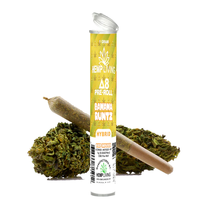 Hemp Living – Delta 8 Flower 1g Pre-Roll – Banana Runtz High Potency Kief Infused