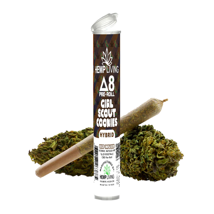 Hemp Living – Delta 8 Flower 1g Pre-Roll – Girl Scout Cookies High Potency Kief Infused